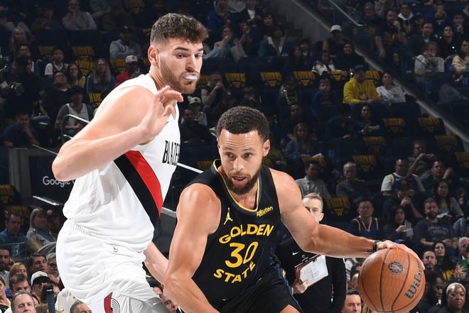 库里刷爆纪录轰38分+9记三分,格兰特8中0躺赢,开拓者双杀勇士